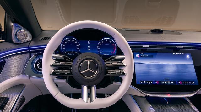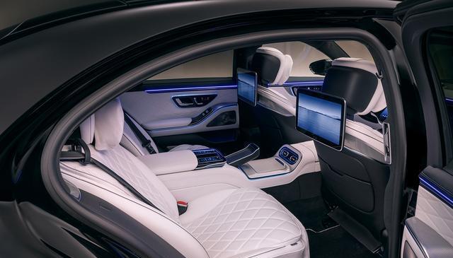 全新S级轿车配备了基于MB.OS的第四代MBUX系统。标配的MBUX超级屏幕将14.4英寸中央显示屏和12.3英寸乘客显示屏整合到一个单元中。