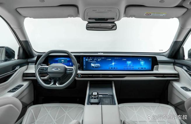 如果说外观是“面子”,那内饰就是“里子”。锐界L的内饰设计走的是“豪华实用”路线,12.3英寸全液晶仪表与27英寸贯穿式大连屏的组合,虽然算不上惊艳,但足够满足日常使用,屏幕显示清晰,操作逻辑简洁,不会出现过度花哨的设计。其搭载的SYNC+2.0系统,支持自然语音交互、实时导航及HUD抬头显示,语音识别率与场景覆盖较好,属于实用派风格。此外,该车L全系标配L2级Co-Pilot 360系统,包含ACC自适应巡航、车道居中、AEB等功能,并配备540°透明底盘,应对日常高速与城区路况足够。